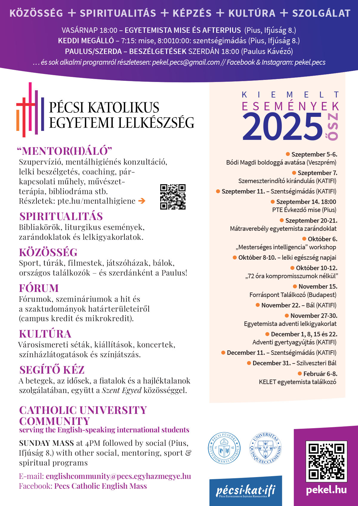 English Univ. Mass at Pius, followed by social – 2025. október 5. 16:00 - 18:00 – pius templom, pécs